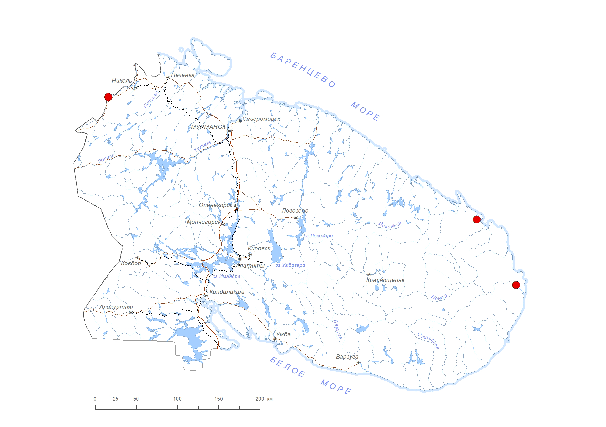 Вид представлен на территории заповедника «Пасвик», заказника Нижнепонойский. Создание ПП в р-не Лумбовского залива.