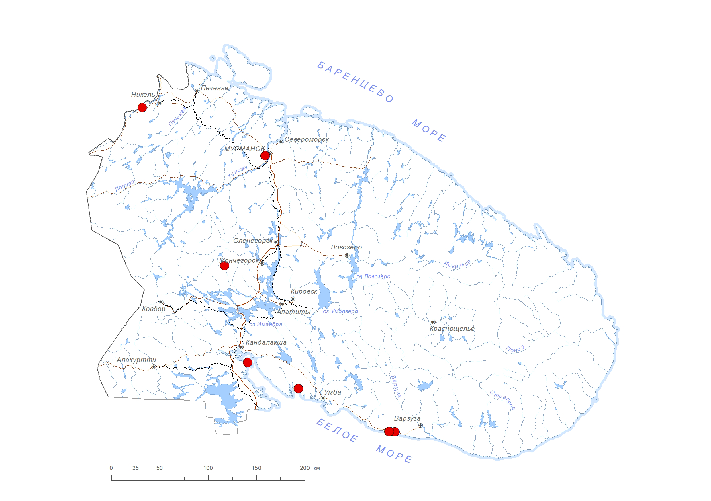 В Мурманской обл.: заповедник «Пасвик» [1], окр. пос. Кола, низовья р. Туломы [2], Нявка-тундра [3], о-ва и побережье Кандалакшского залива Белого моря [4]. В России: Арктика, Европейская часть, Кавказ, Сибирь, Дальний Восток [4]. Вне России: Европа, Азия, Сев. Америка [5]. Бореальный, преимущественно приокеанический вид [6].