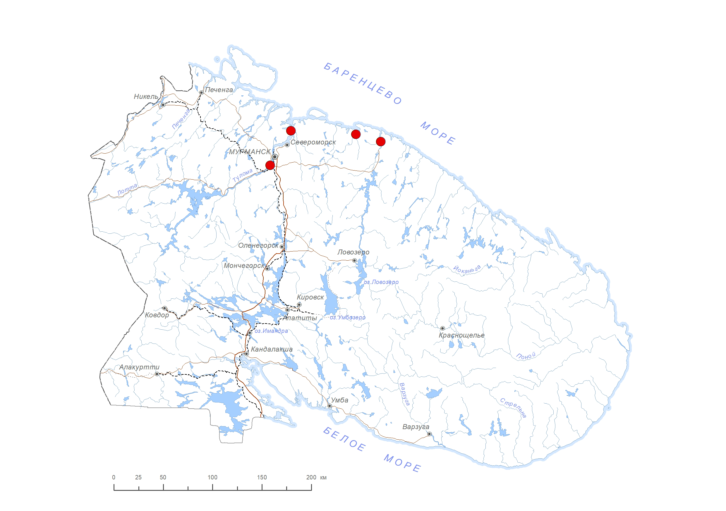 Из трех опубликованных в 1890 г. точек произрастания [7], указанных выше, современными исследованиями подтверждена только одна – скалы на правом берегу р. Териберки вблизи ее устья [8]. Площадь популяции 2 м², растения рассредоточены в сплошном моховом ковре среди мхов. Спорофиты не обнаружены.