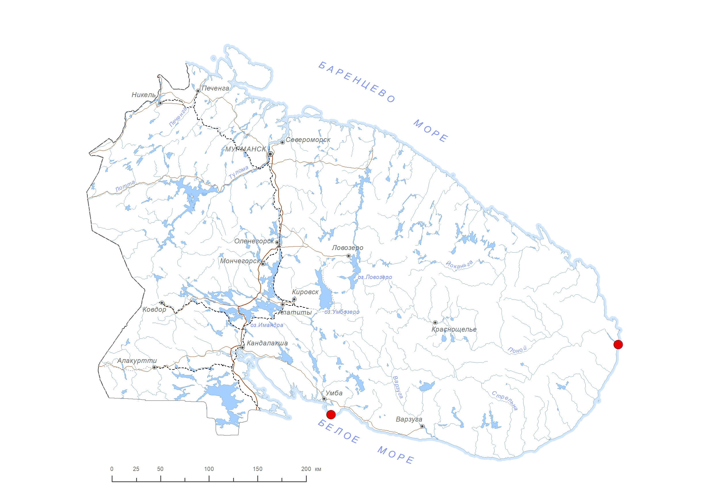 Представлен на территории Кандалакшского заповедника. Необходимо расширить границы «Понойского рыбохозяйственного» заказника и включить в его территорию мыс Корабельный.