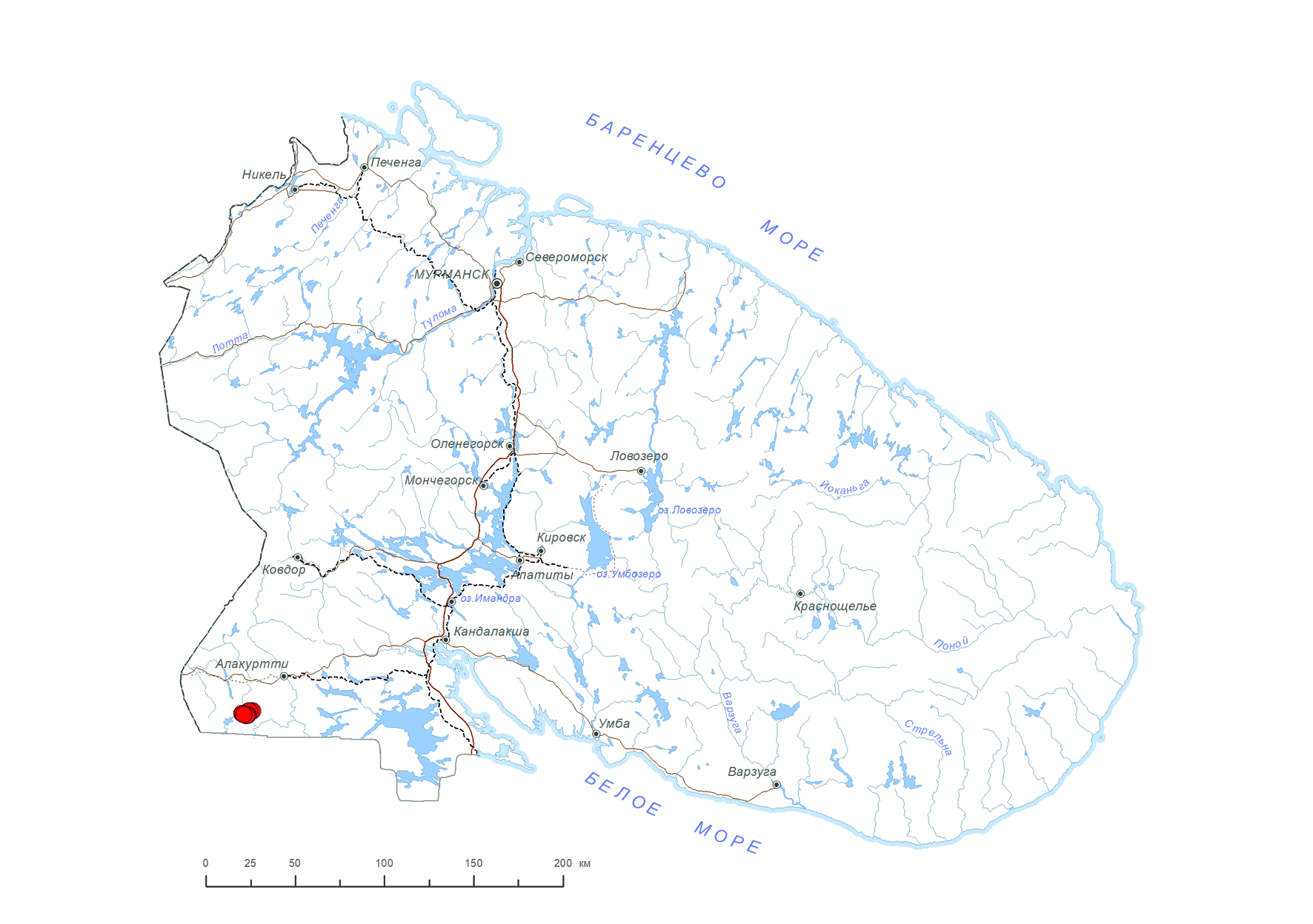 Очень маленькие по площади и численности популяции. Подтверждено нахождение вида в ущельях Курсукуру в 1994 году [2] и Пюхакуру в 2023 г. [5], растения в удовлетворительном состоянии, со спорофитами.