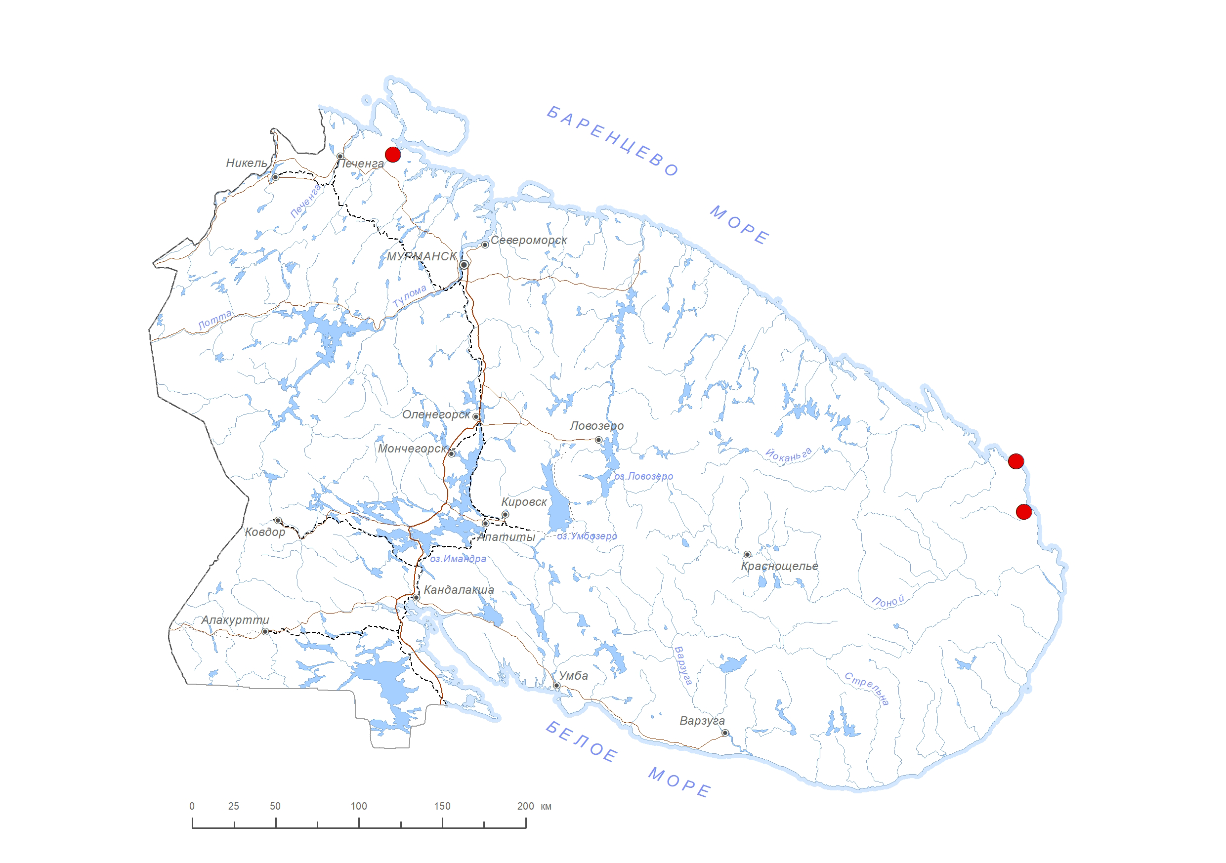 Схема распространения видов: Петрова О.В.