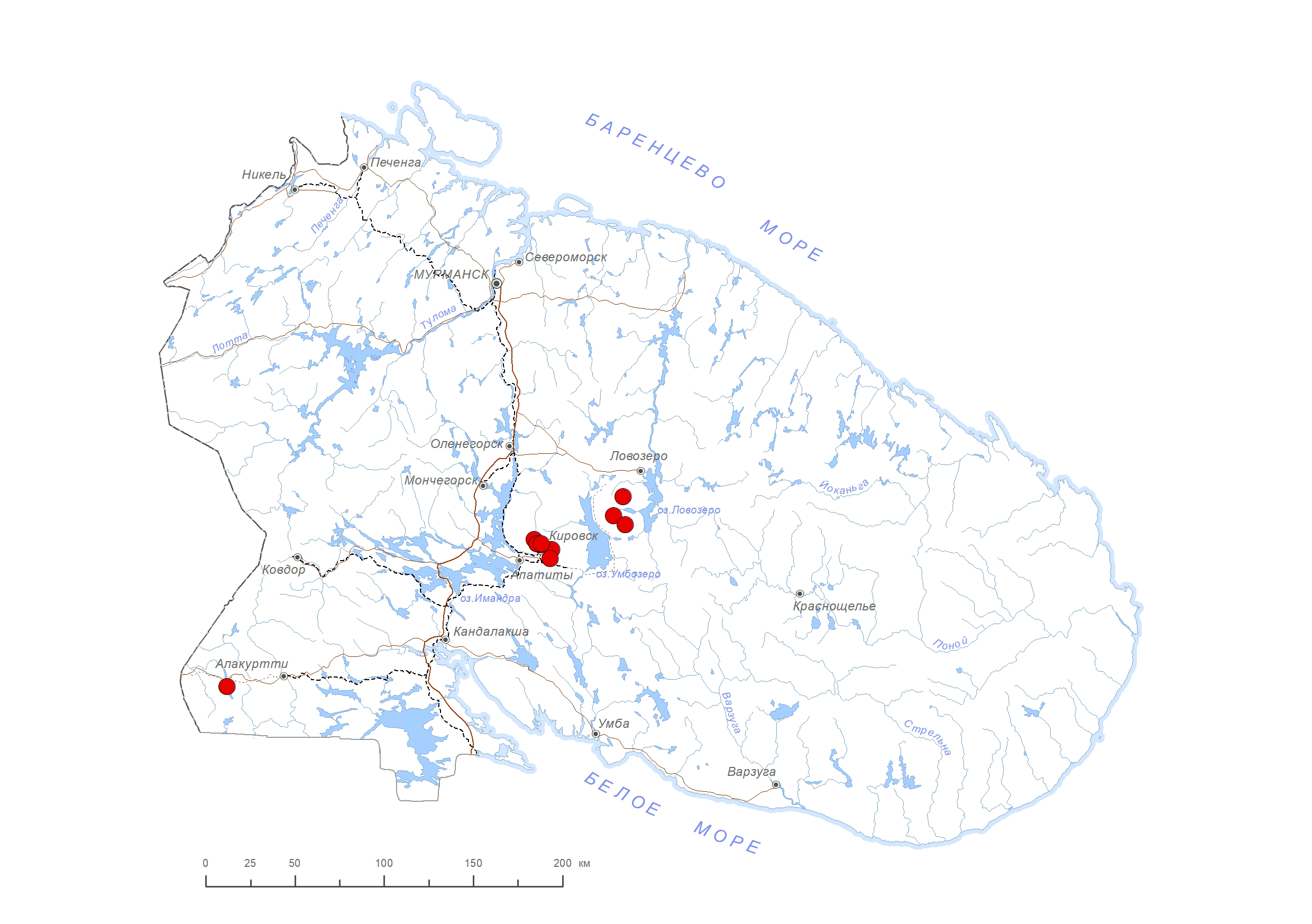 Схема распространения видов: Петрова О.В.