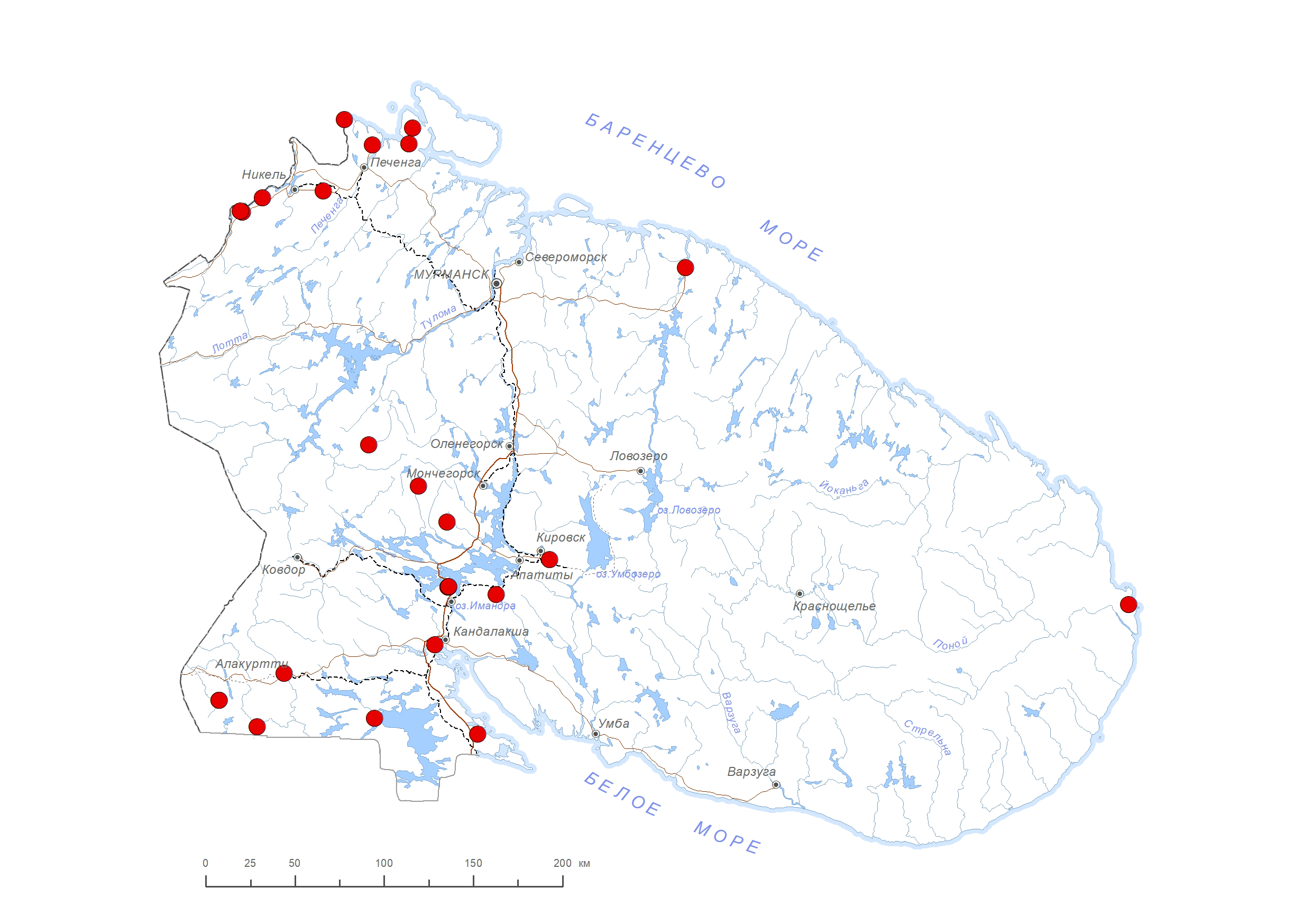 Представлен на территории Лапландского заповедника, заповедника «Пасвик», природных парков «Полуострова Рыбачий и Средний», «Кораблекк», заказников «Лапландский лес», «Кайта» и «Кутса». Указан для памятника природы «Айкуайвенчорр» [14].