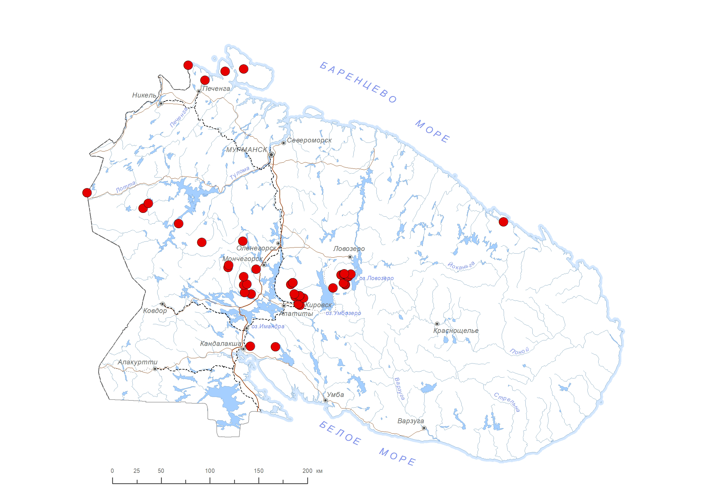 Схема распространения видов: Петрова О.В.