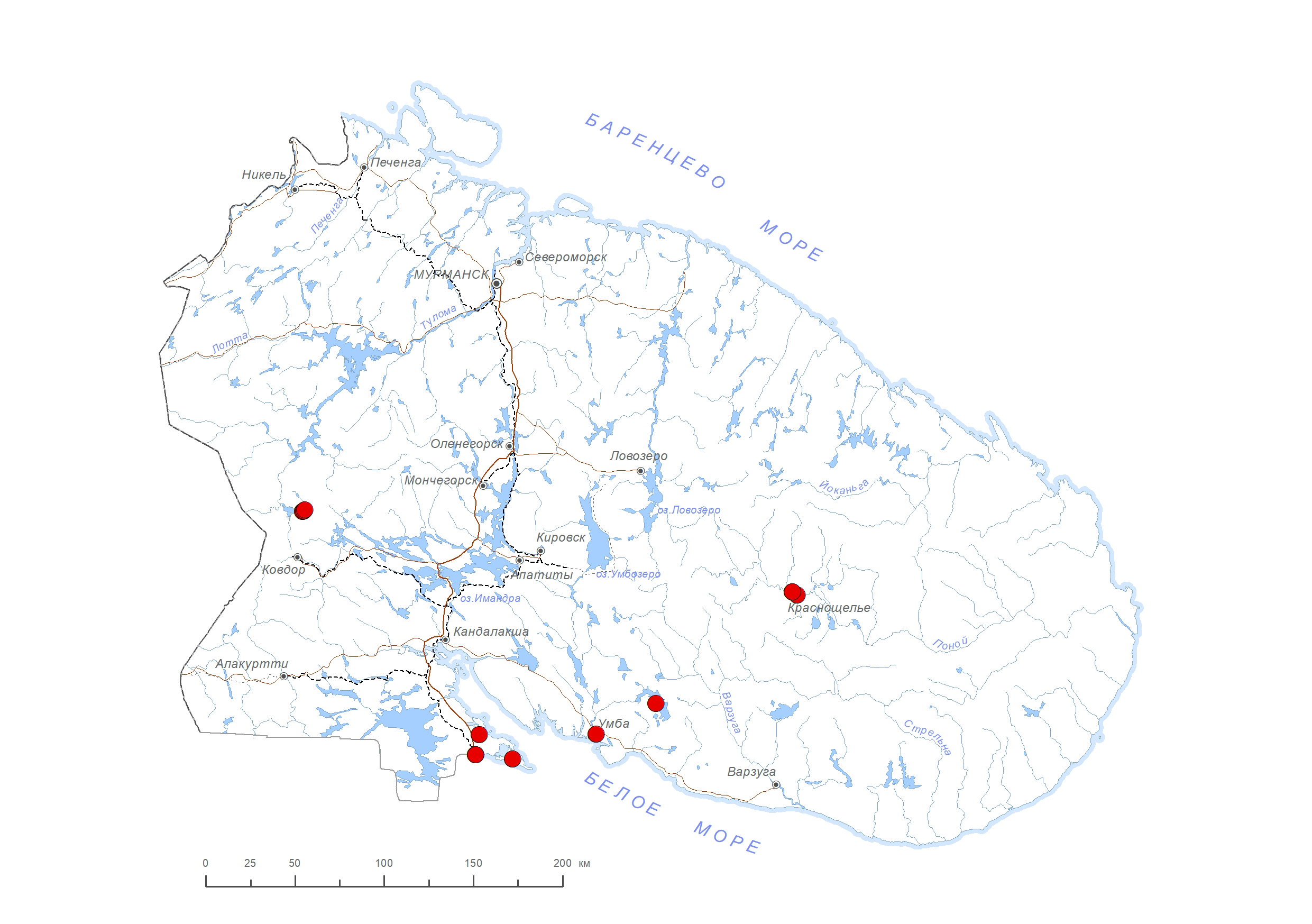 В Мурманской обл.: оз. Нотозеро – протока из Нижнего озера в оз. Гирвас [1, 2], р. Поной выше с. Краснощелье [1, 2], оз. Вялозеро [3], пос. Умба [4], о. Великий в Белом море [5], ст. Пояконда [5–7]; в окр. с. Ковда [8] известен по историческим указаниям, но в последнее время найден не был [9]. В России: европейская часть, Зап. и Вост. Сибирь, Дальний Восток. Вне России: Европа, Азия, Сев. Америка [10]. Бореальный голарктический вид.