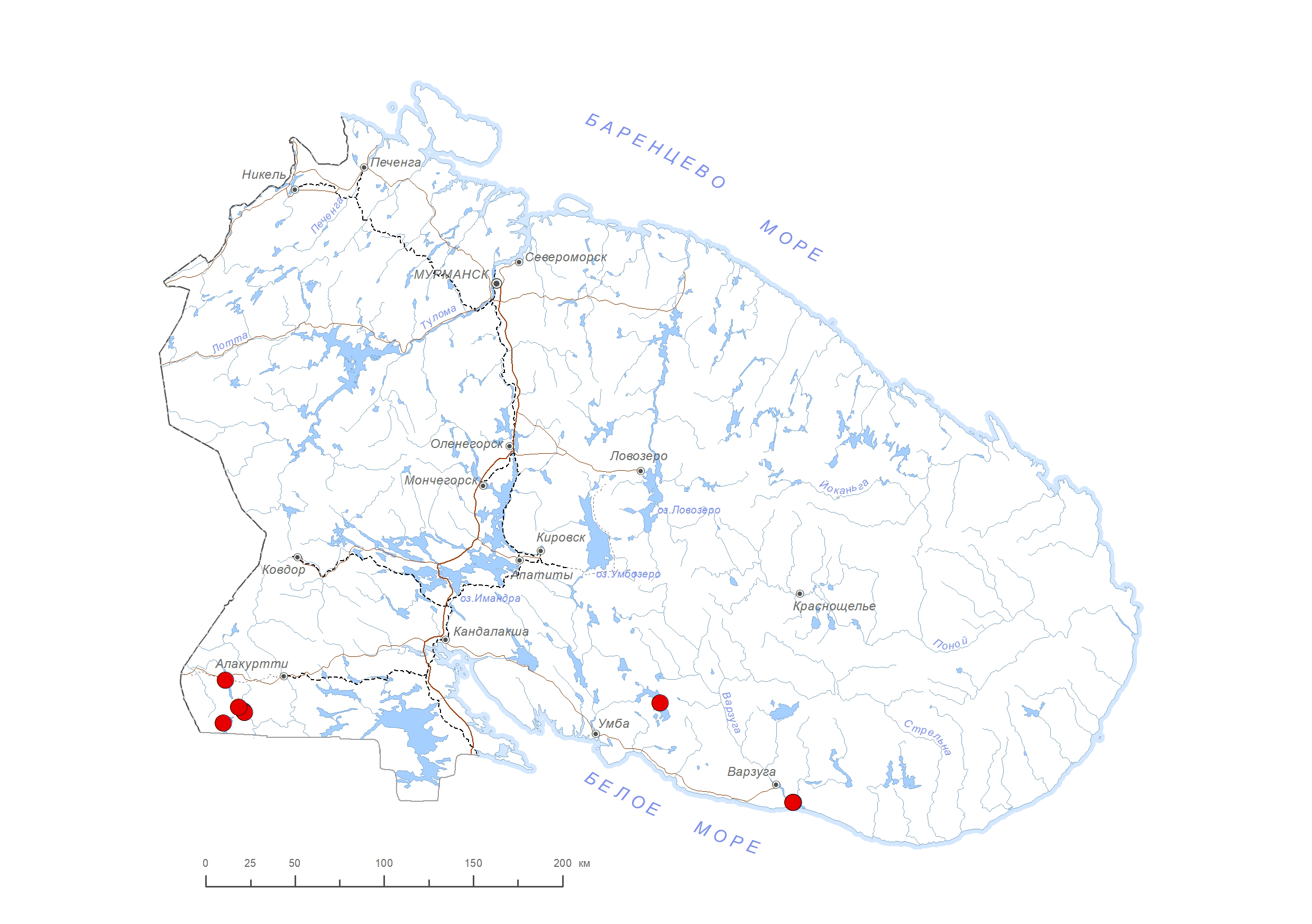 В Мурманской обл.: оз. Куолаярви [1], озера Моутикайненлампи, Пюхялампи и Пюхяярви [2–4], оз. Вуоснаярви [4], оз. Вялозеро [5, 6], нижнее течение р. Варзуги [1, 7, 8]. В России: европейская часть, Сибирь, Дальний Восток. Вне России: Европа, Азия, Сев. Америка [9]. Плюризональный голарктический вид на северной границе ареала.