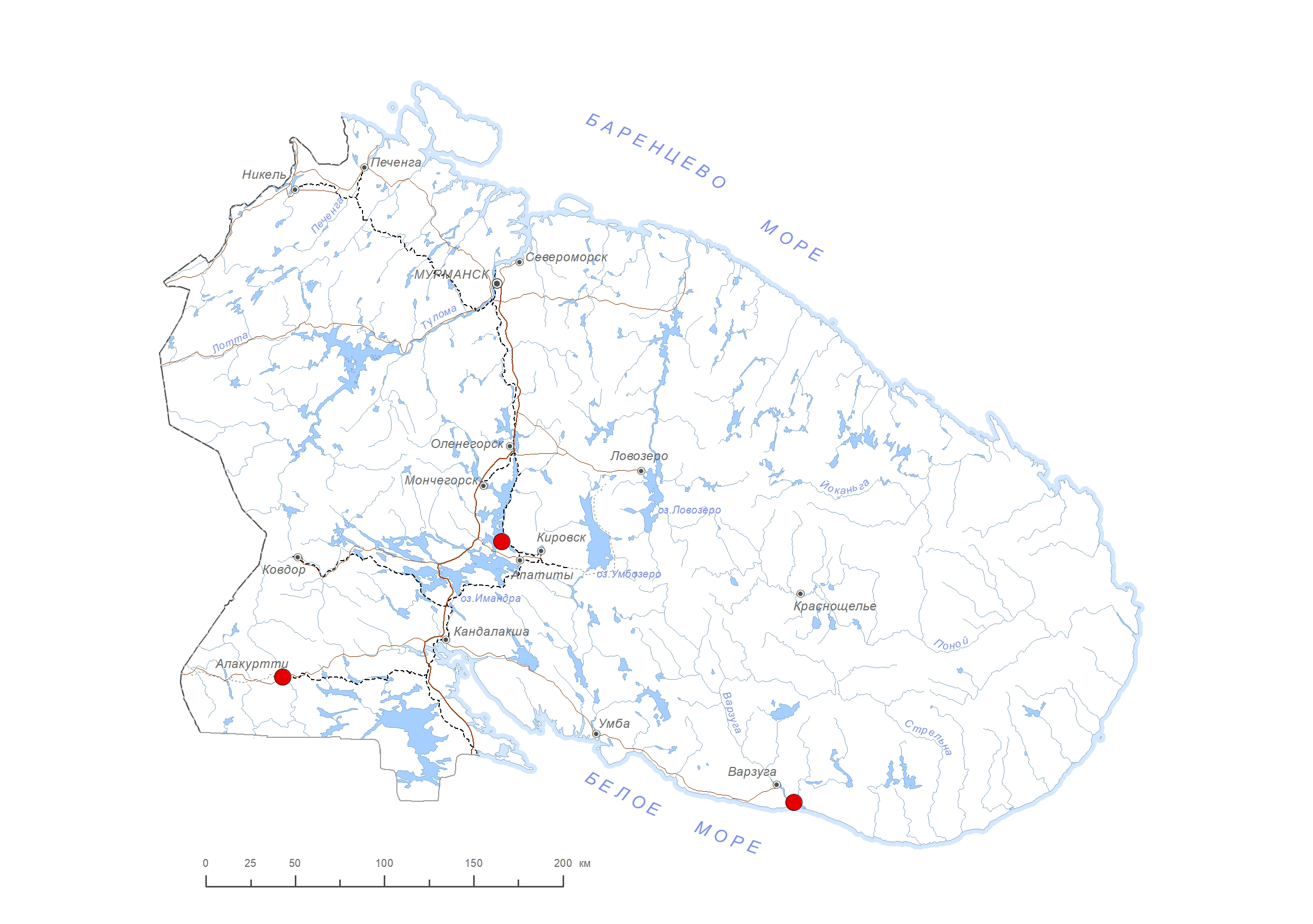 В Мурманской обл.: между губами Белой и Щучьей на оз. Большая Имандра [1, 2], нижнее течение р. Варзуги у острова Вичанная Курья [2–3], р. Тунтсайоки у пос. Алакуртти [4]. Все прежние указания на нахождение вида в области относятся к Potamogeton berchtoldii Fieber. В России: европейская часть, Кавказ, Сибирь, Дальний Восток. Вне России: Европа, Азия, Сев. Америка, Африка [5].