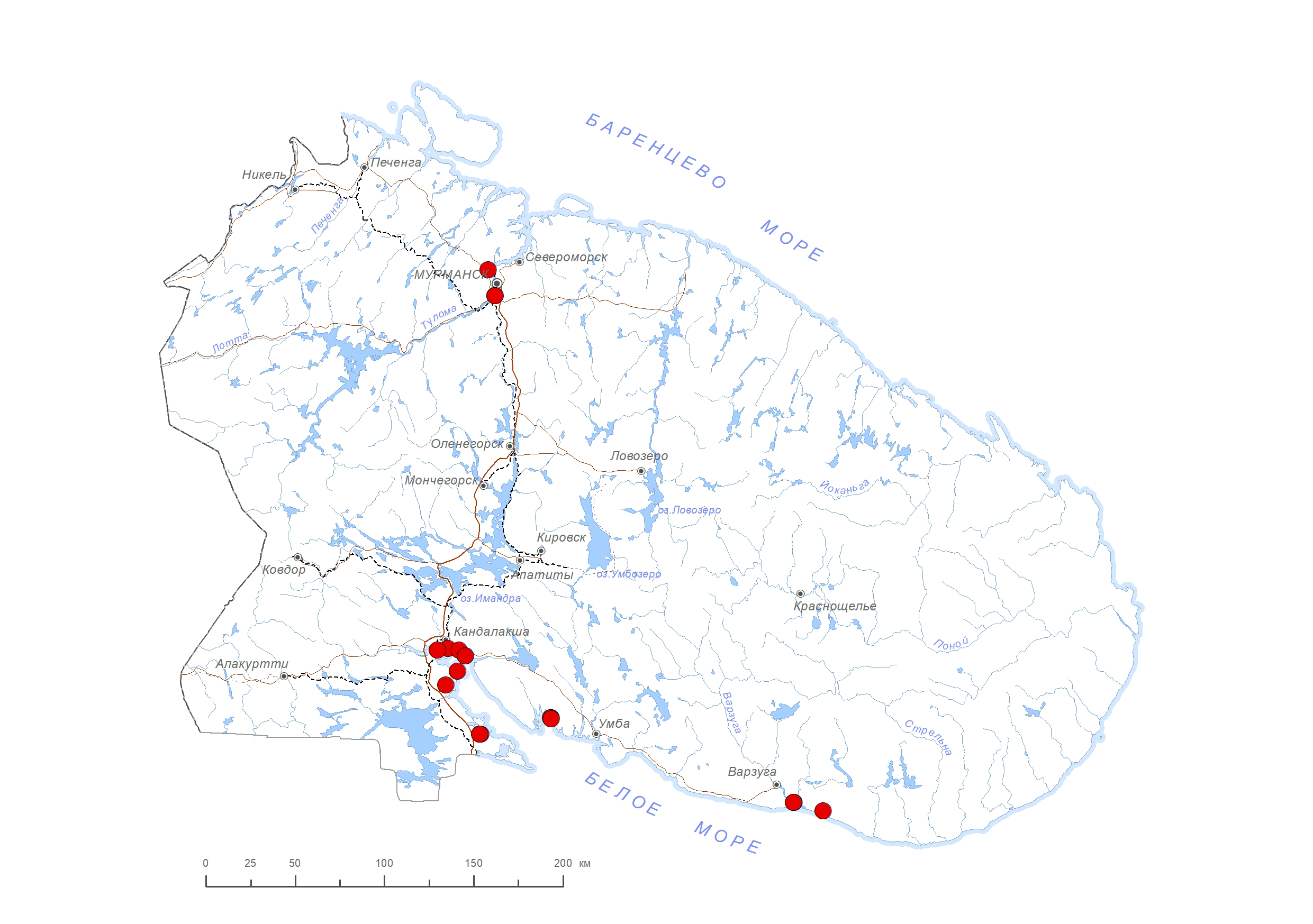 В Мурманской обл.: окр. г. Кола [1, 2], устье р. Лавна [3], окр. г. Кандалакша [4], губа Воронья в Кандалакшском заливе [5], о. Ряжков [5, 6], арх. Олений [5, 7] и Лувеньгский [5, 7–9], окр. с. Ковда [5, 10], окр. бывшего н. п. Порья губа [4, 11], нижнее течение р. Варзуга – близ о. Вичаная Курья [4, 12], устье р. Индера [5]. Для р. Паз приводился ошибочно [13]. В России: европейская часть, Кавказ, юг Сибири и Дальнего Востока. Вне России: Европа, Азия, Сев. и Южн. Америка [14]. Космополит.