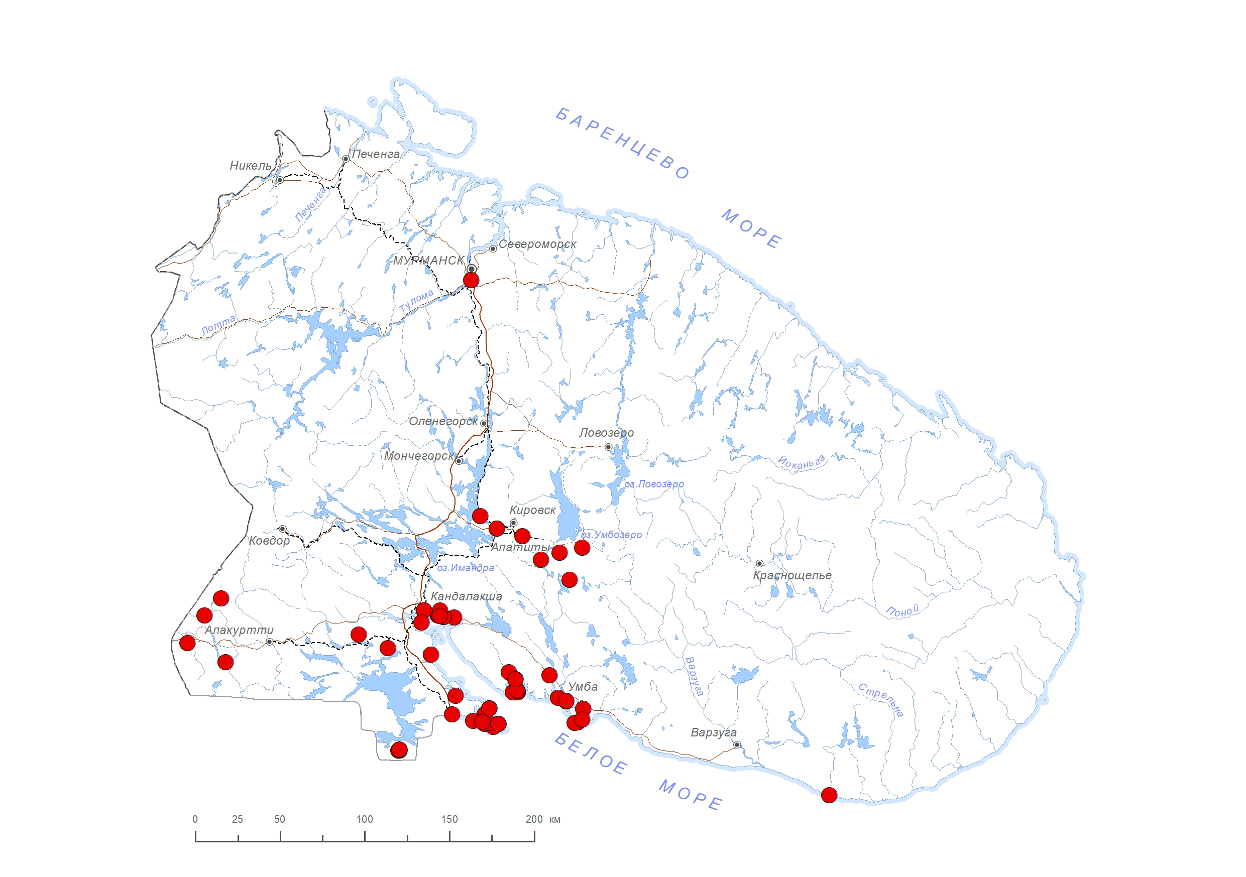 Схема распространения видов: Петрова О.В.
