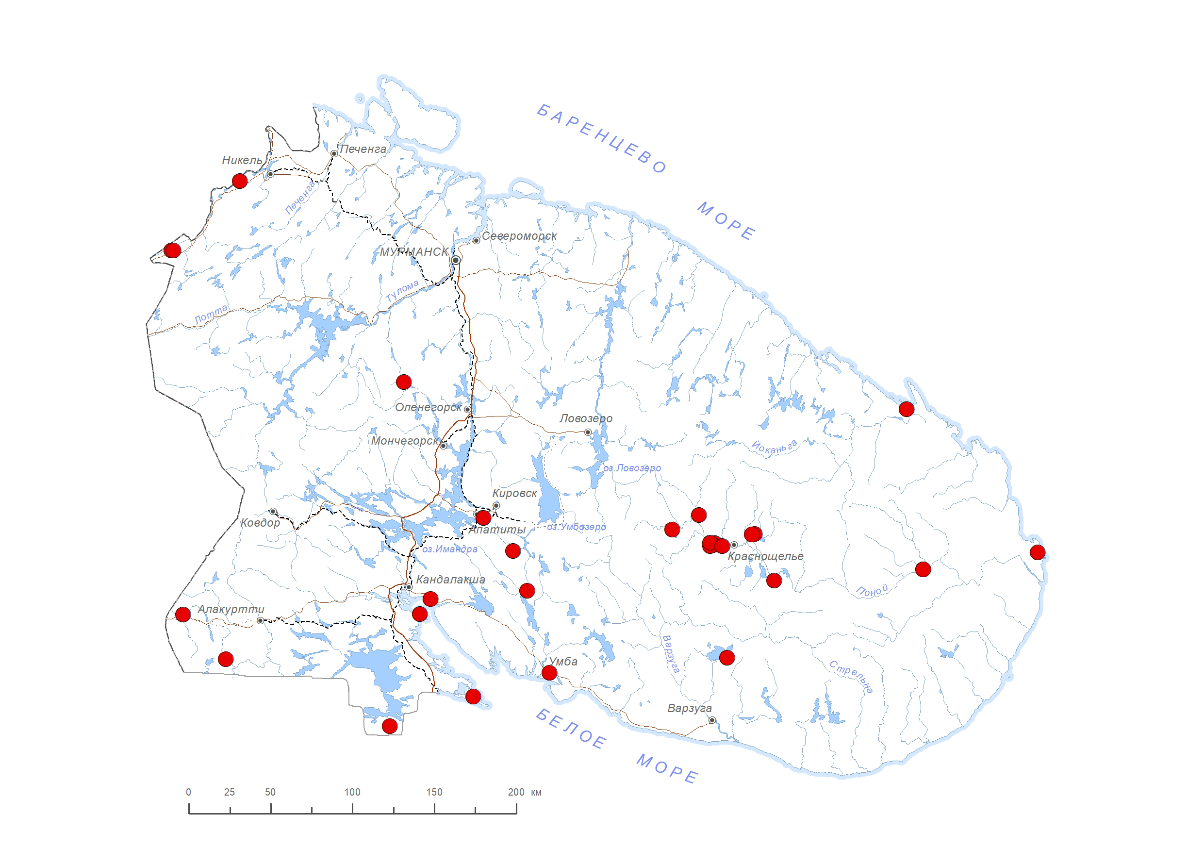 Представлен на территории заповедника «Пасвик» и Кандалакшского заповедника, а также заказника «Кутса».