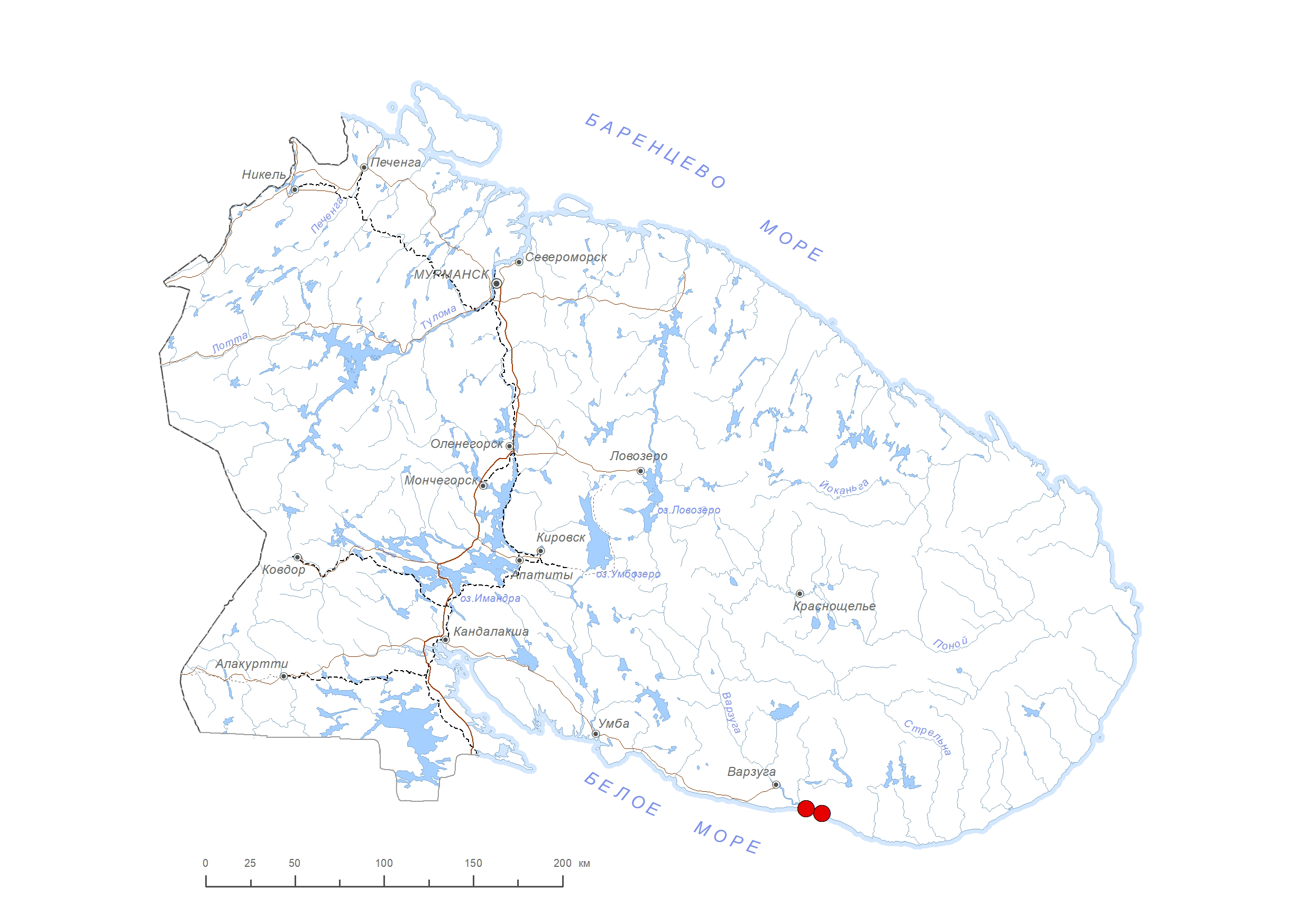 В Мурманской обл.: устье р. Варзуги [1–5]. Для района с. Чапома [6] приводился ошибочно. В России: север европейской части. Вне России: север Европы [7]. Бореальный европейский вид.