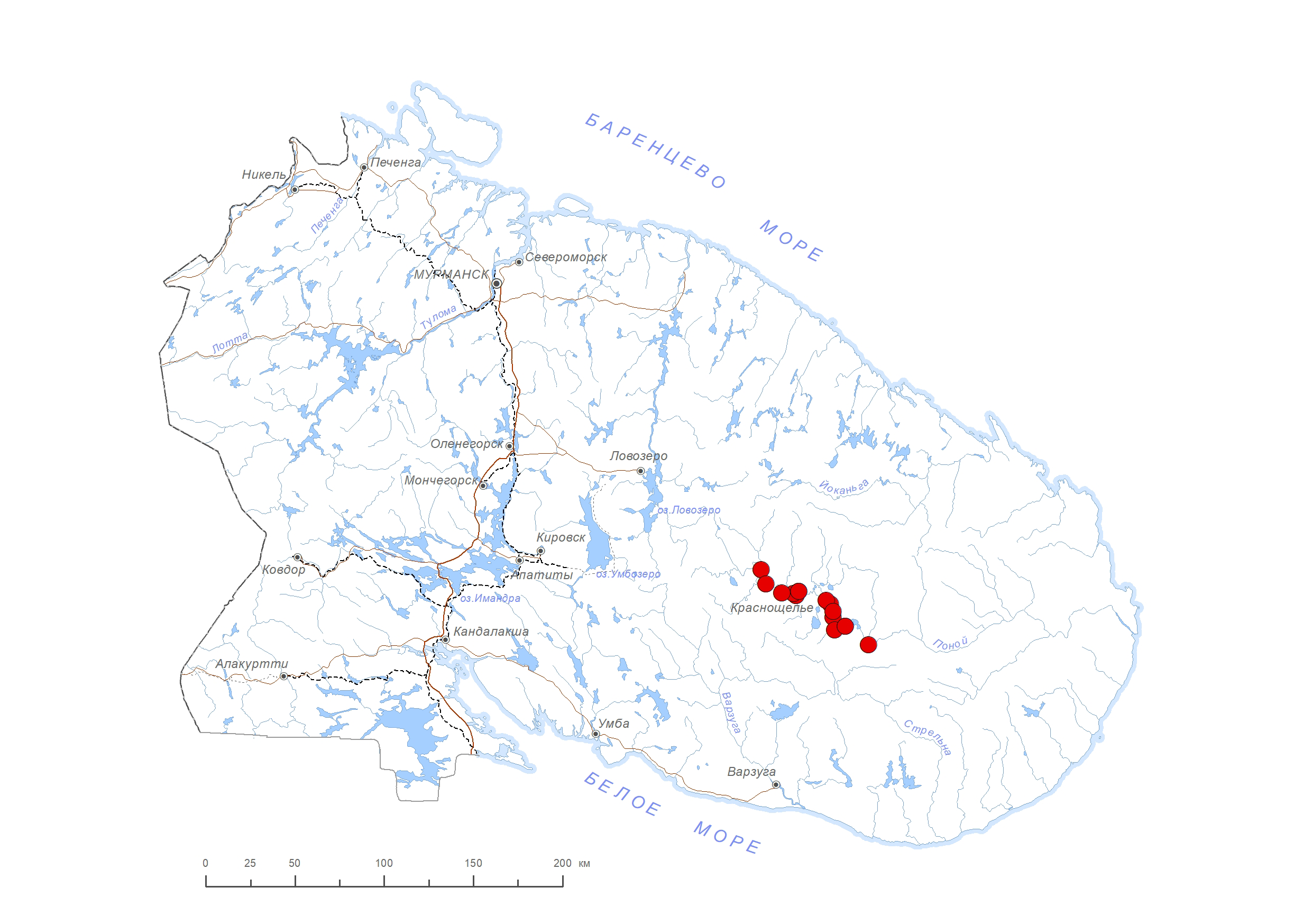 В Мурманской обл.: среднее течение р. Поной от р. Сахарной до р. Лосинги [1–4]. В России: европейская часть, Зап. и Вост. Сибирь, Дальний Восток. Вне России: Азия, Сев. Америка [5]. Гипоарктический голарктический вид, в регионе на северо-западном пределе распространения.