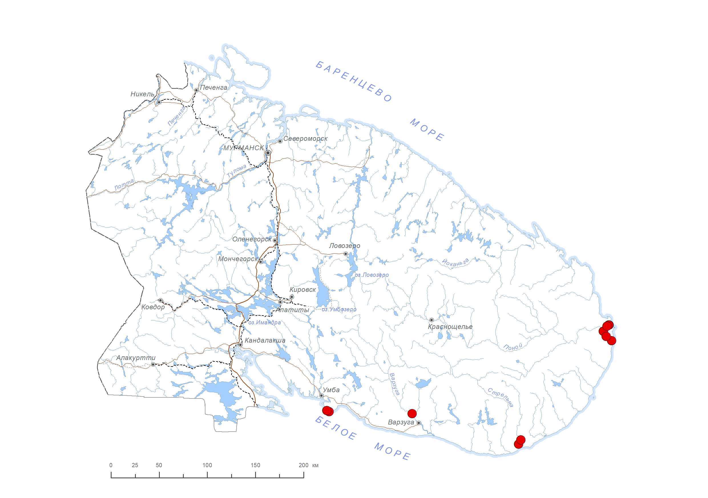 Схема распространения видов: Петрова О.В.