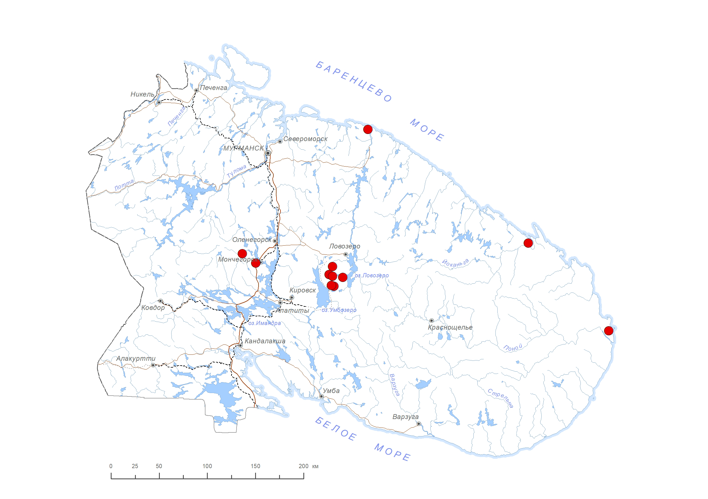 Схема распространения видов: Петрова О.В.