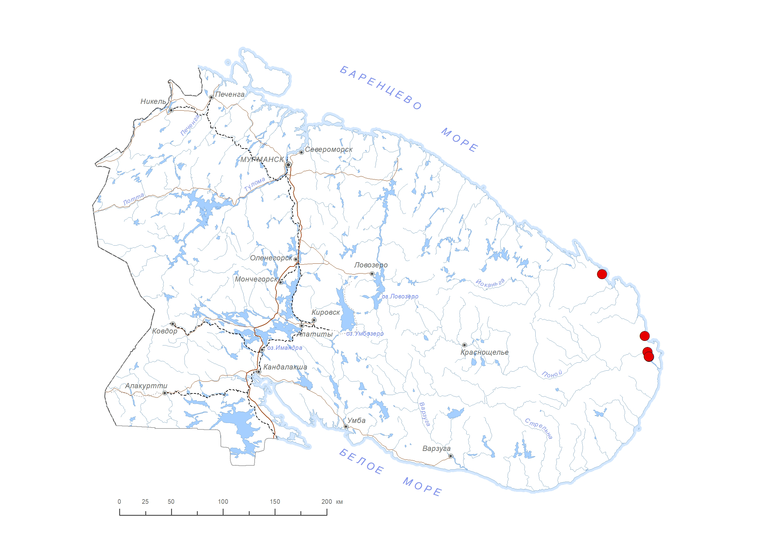 В Мурманской обл.: Западный наволок в Лумбовской губе (историческое местонахождение) [1, 2], устье р. Орловки [3, 4], устье р. Поной – близ села [2, 5–7]. Указания для п-ова Святой Нос [8–10] ошибочны [5, 11]. Указания для Дальних Зеленцов [12] ошибочны. В России: европейская часть, Сибирь, Дальний Восток. Вне России: Европа, Азия [13]. Арктоальпийский евразиатский вид.