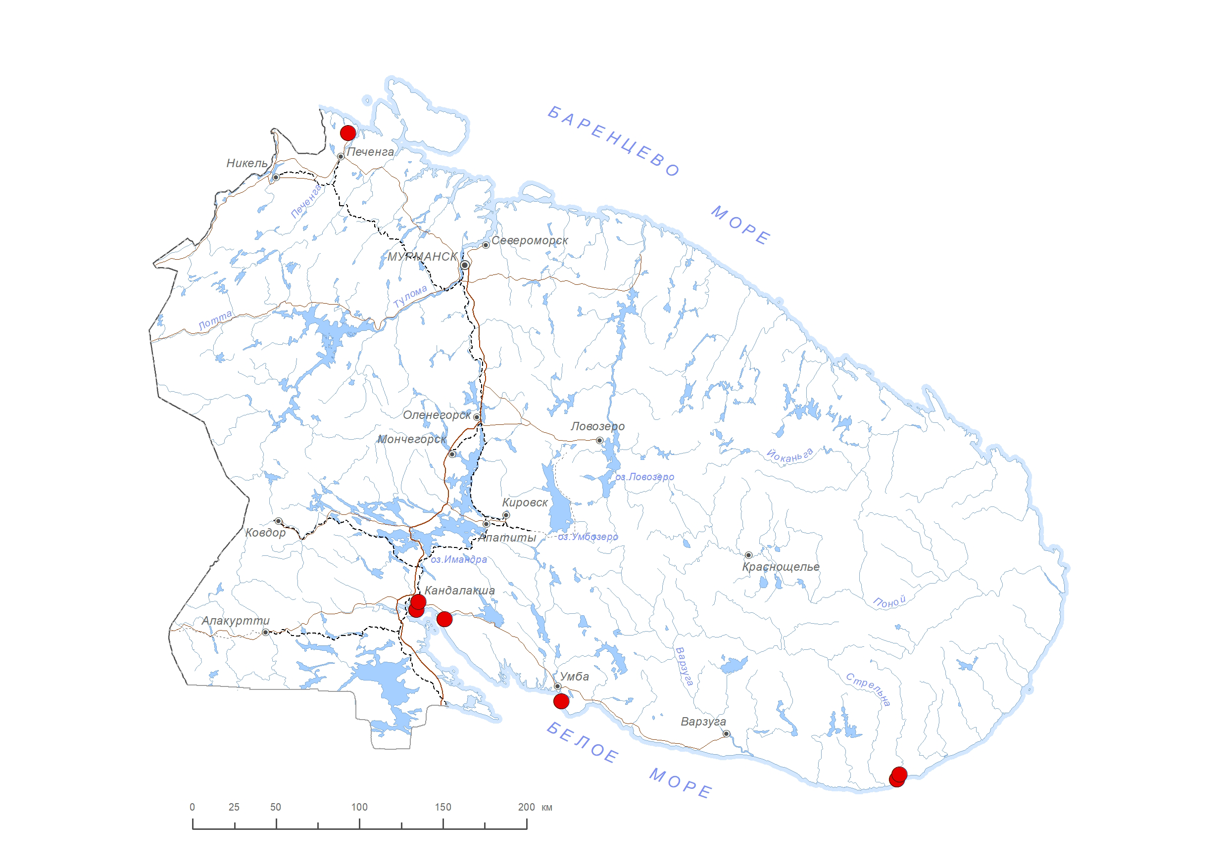 Представлен на территории Кандалакшского заповедника. Для природного парка «Полуострова Рыбачий и Средний» и заказника «Кутса» указан [11] ошибочно. В настоящее время вид культивируется в ПАБСИ; устойчив в условиях культуры.
