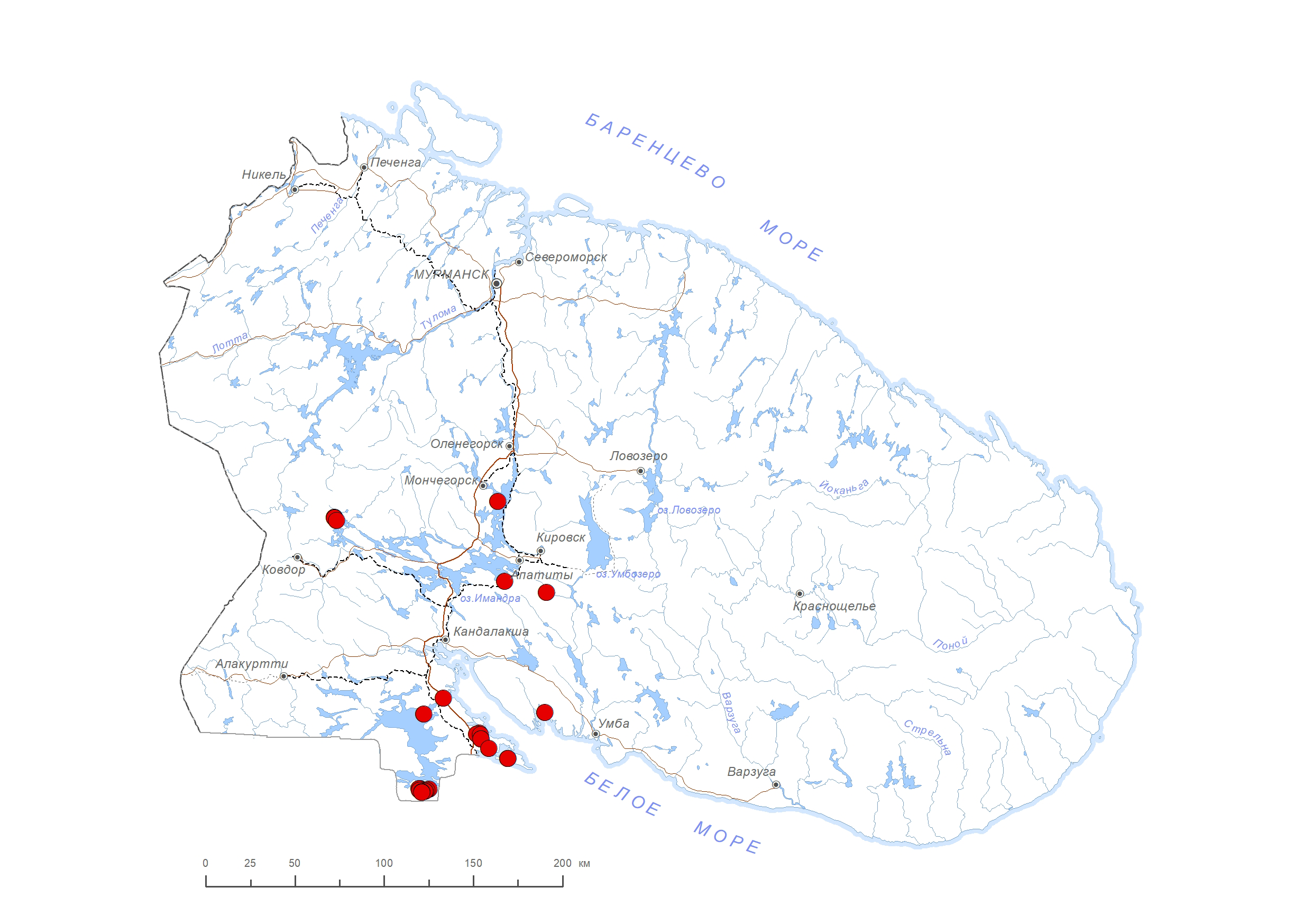 Схема распространения видов: Петрова О.В.