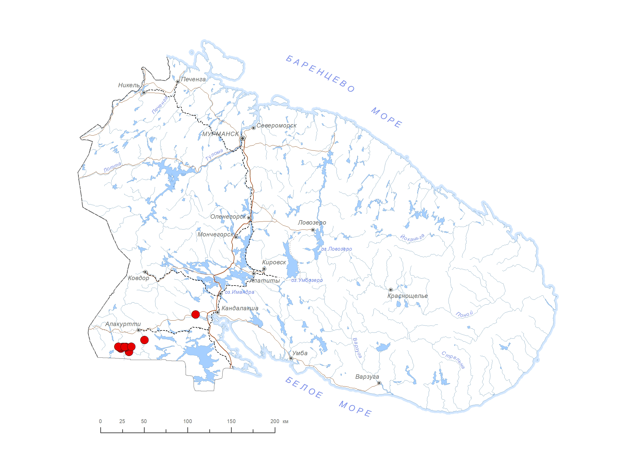 В Мурманской обл.: гора Гремяха [1], долины рек Тенни-йоки, Нурмийоки, Кутса и Тумча [2–4]. В России: европейская часть, Кавказ, Сибирь, Дальний Восток. Вне России: Европа, Азия, Сев. Америка [5]. Бореальный циркумполярный вид.