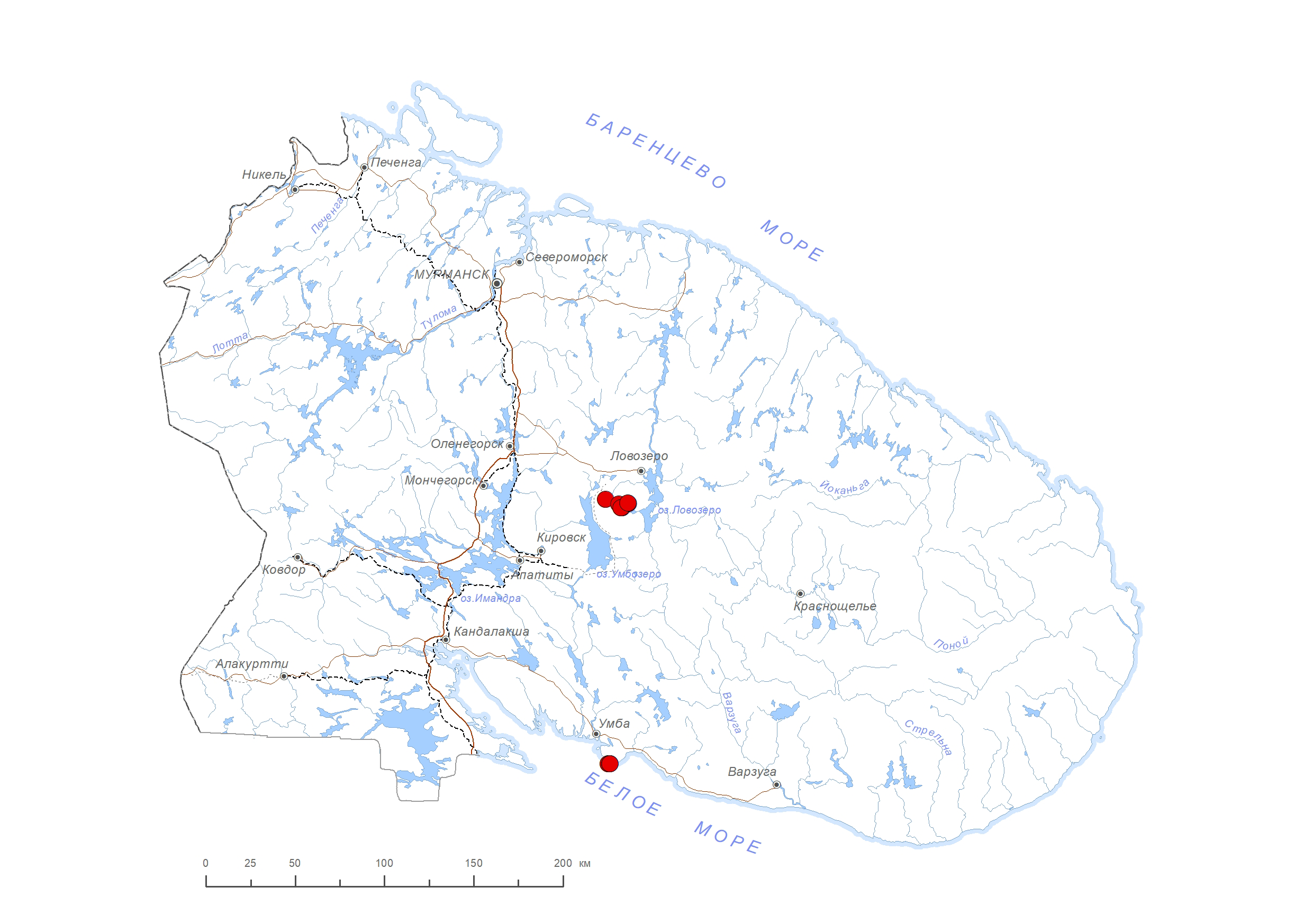 Представлен на территории Кандалакшского заповедника и заказника «Сейдъявврь». Необходима организация специальных работ для поиска популяций вида, изучения их состояния и оценки угроз к существованию.