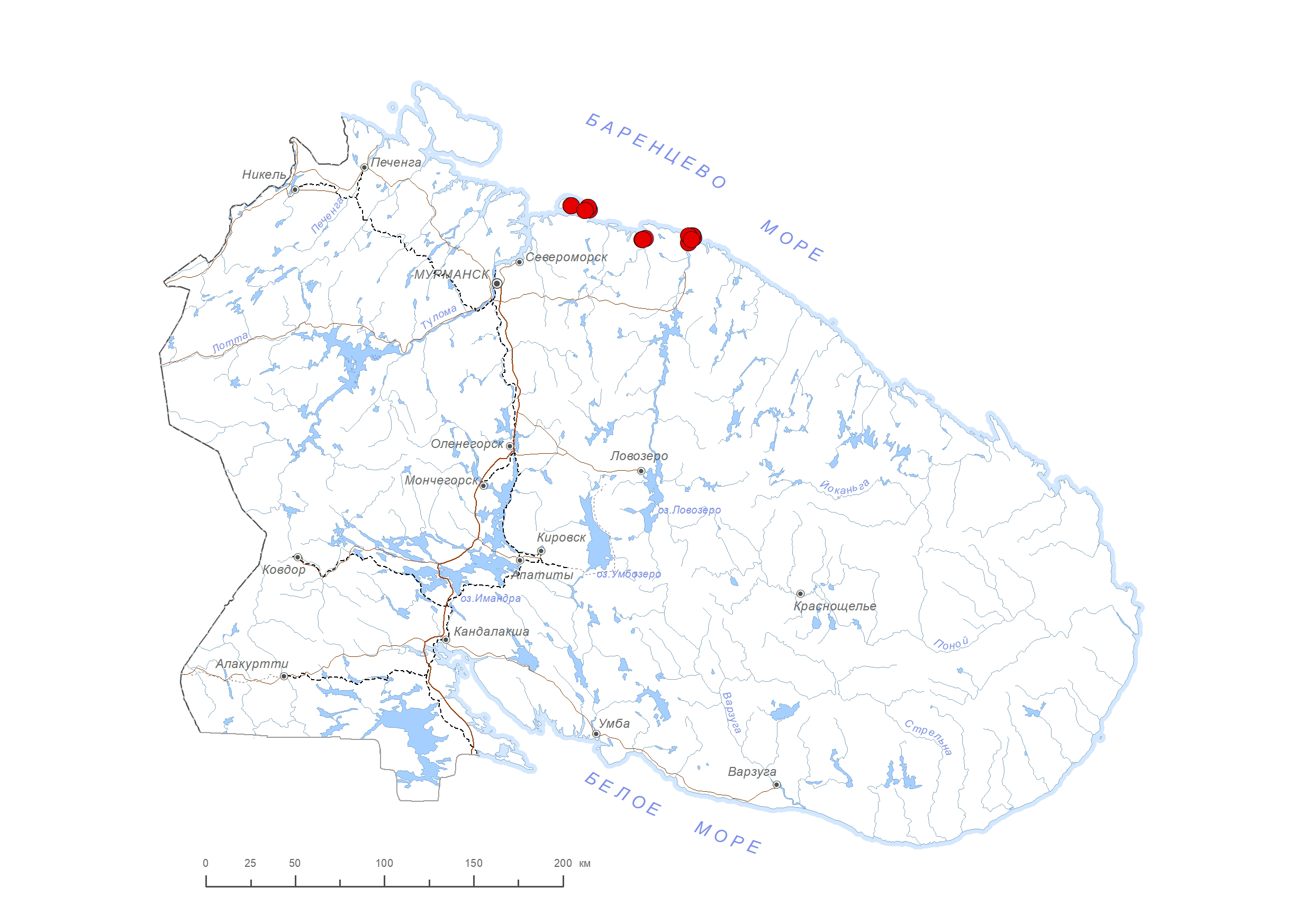 Большие популяции на о. Кильдин и на обоих берегах р. Воронья в ее устье стабильно существуют в течение длительного времени в условиях отсутствия сильного антропогенного пресса. Численность в окр. пос. Териберка значительно ниже, не превышает нескольких десятков особей [10].