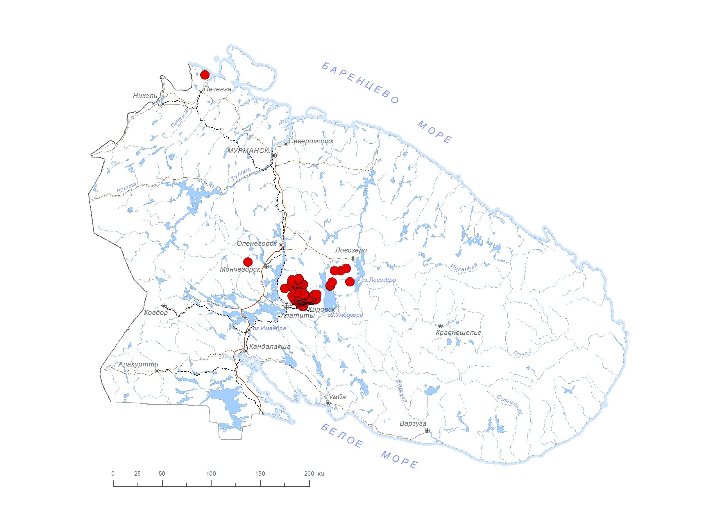 В связи с развитием горнодобывающей промышленности площади, занимаемые популяциями, сократились в Хибинах и Ловозерских горах. На участках тундр на склонах северной и восточной экспозиций можно встретить от 5 до 100 цветущих особей на 100 кв. м. В районе пос. Лиинахамари обнаружено всего несколько побегов [1].