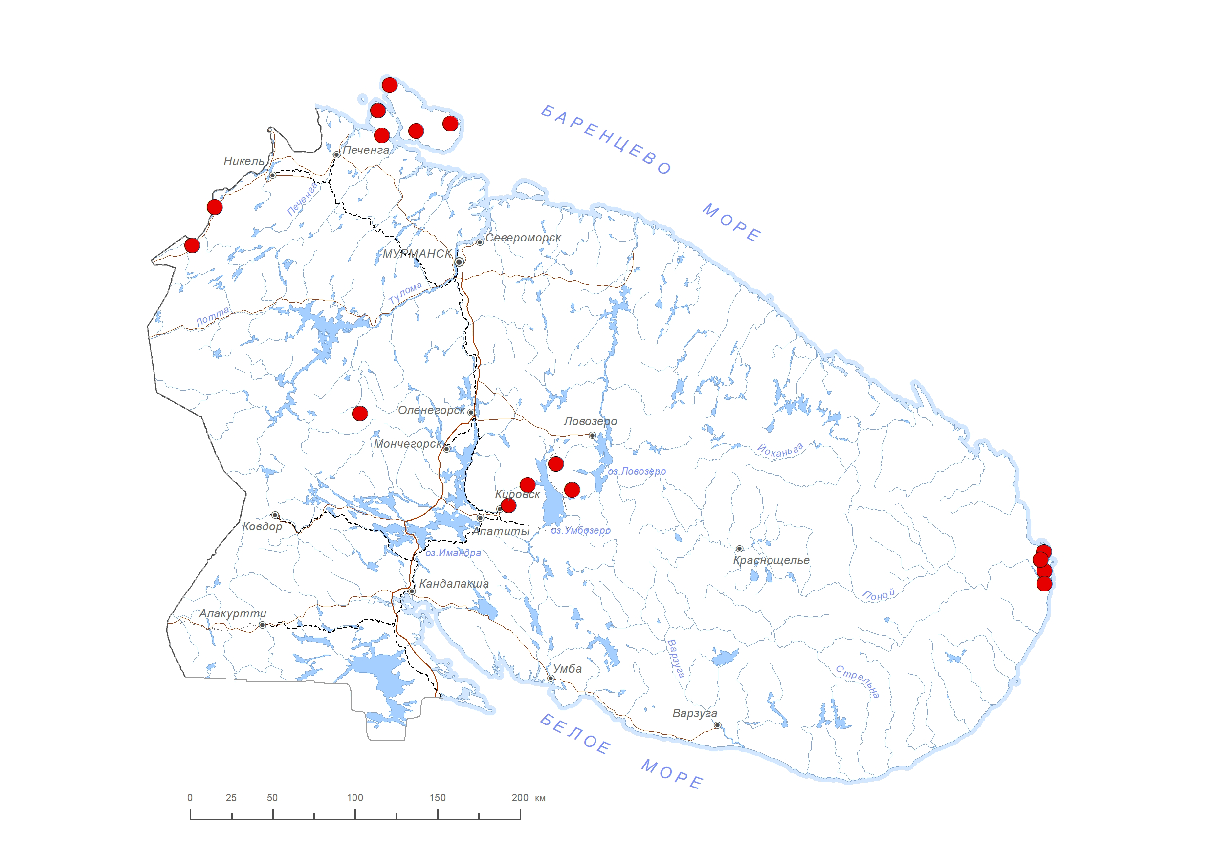 В Мурманской обл.: п-ова Рыбачий и Средний, р. Паз, Хибины, Ловозерские горы, Сальные тундры, низовья р. Поной и р. Русинга [1, 2]. В России: север европейской части, Кавказ. Вне России: Европа, Азия, Сев. Америка [2, 3]. Амфиатлантический арктоальпийский вид.