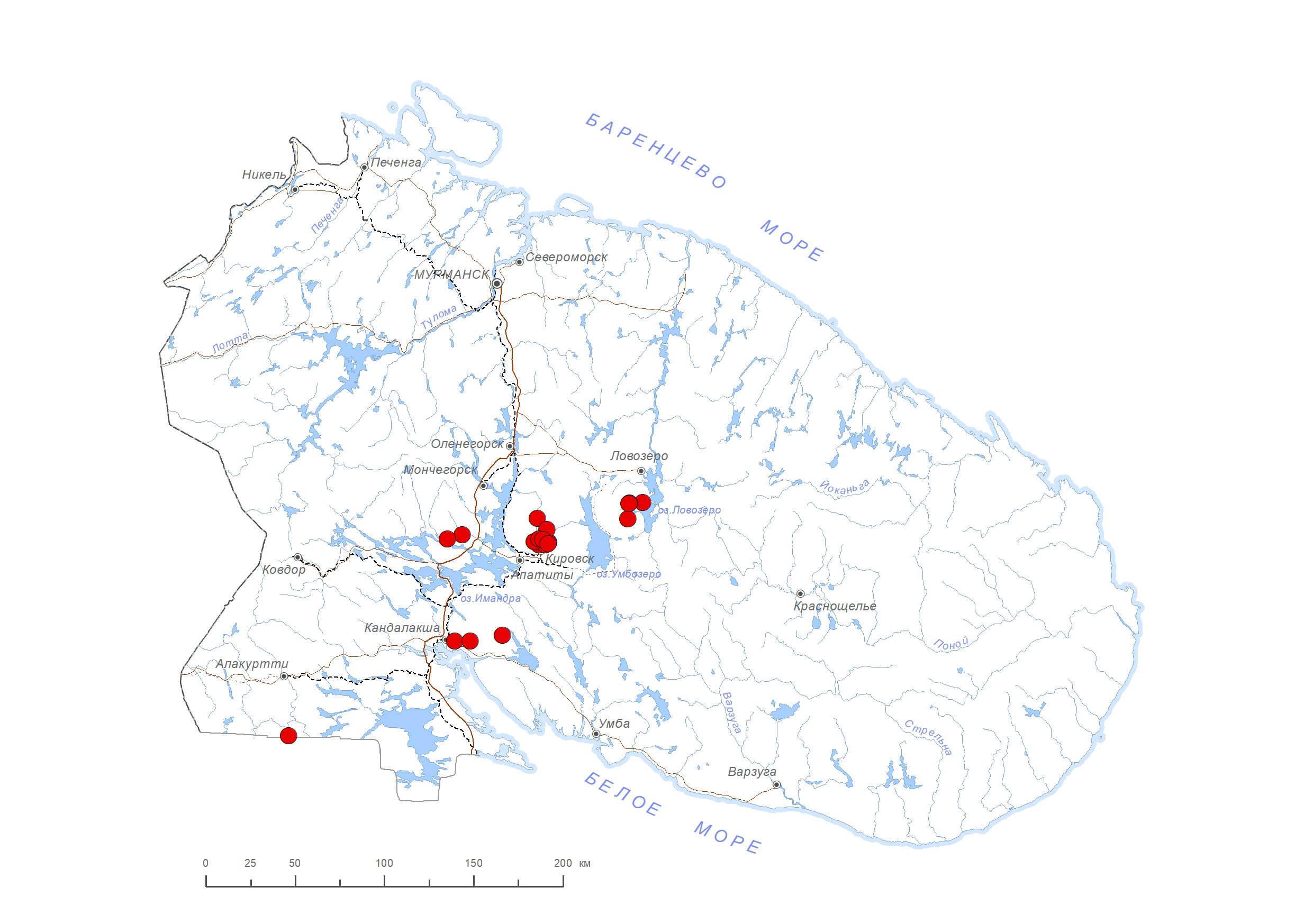 В Мурманской обл: Чуна-тундра, Хибины, Ловозерские горы, близ г. Кандалакши [1], Лувеньгские тундры [2], Иолги-тундры [3], гора Пязивара [4]. Для «р. Тумча (ущ. Пюхякуру)» приведен [1] ошибочно. В России: респ. Карелия и Мурманская обл. Вне России: Европа, Сев. Америка (Гренландия) [5]. Восточный предел распространения. Арктоальпийский европейский вид.