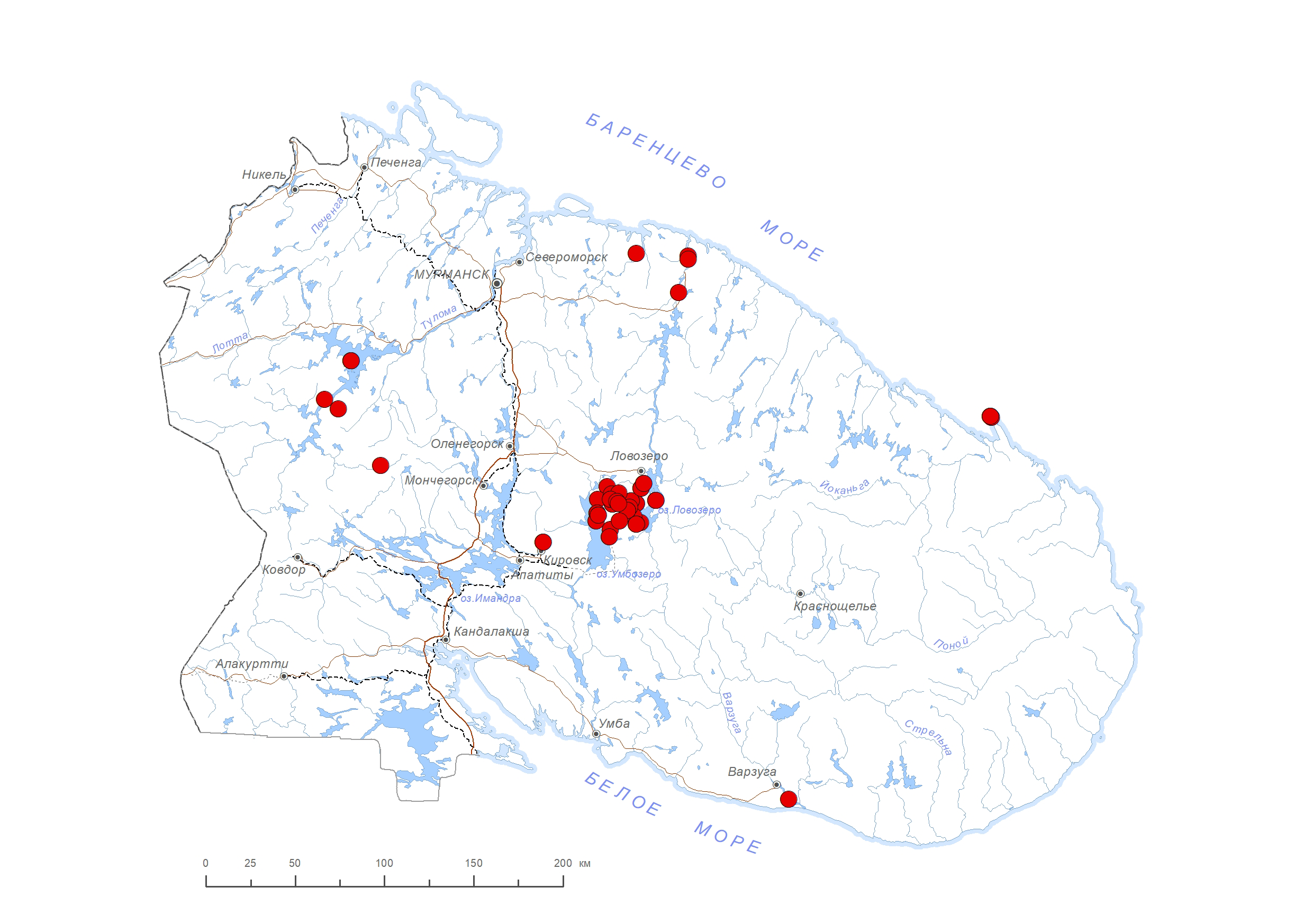 В Мурманской обл.: нижние течения рек Териберка [1] и Воронья [2], ст. Голицыно [2], басс. оз. Нотозеро [3] – Ниванкюль [2], р. Чиль [3], Чильтальд (Туадаш-тундра) [2], Сальные тундры [3], мыс Святой Нос [2–4], р. Западная в Лумбовском заливе [3], Ловозерские горы [2–5]. В России: север европейской части [6]. Вне России: не встречается. В области западный предел распространения. Арктогор-нотундровый европейский вид.