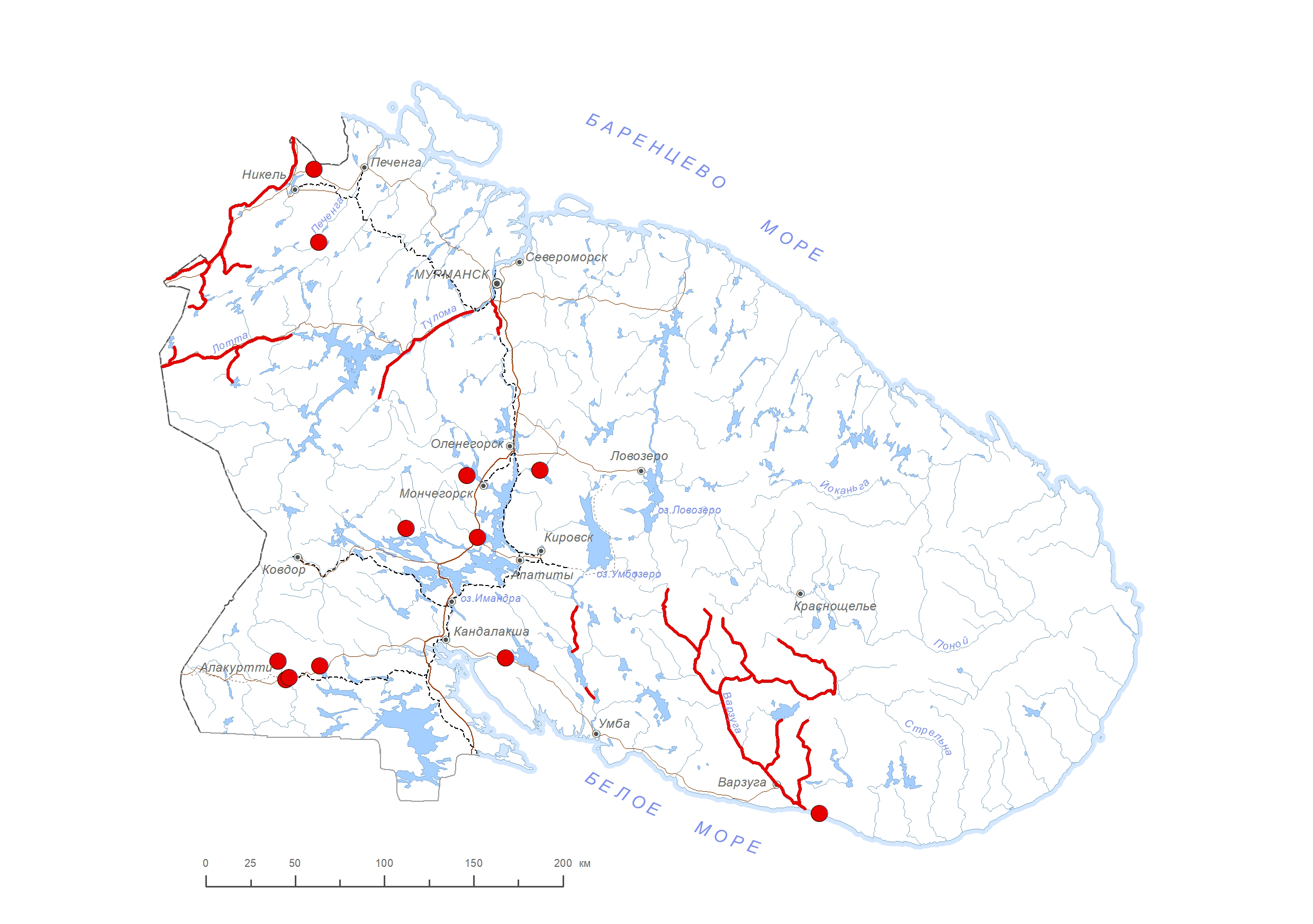 Снижение качества вод за счет прямого и воздушного загрязнения водотоков, сплава леса, трансформация гидрологического режима рек, неконтролируемый промысел атлантического лосося и кумжи, нарушения условий их воспроизводства, акклиматизация чуждых видов.