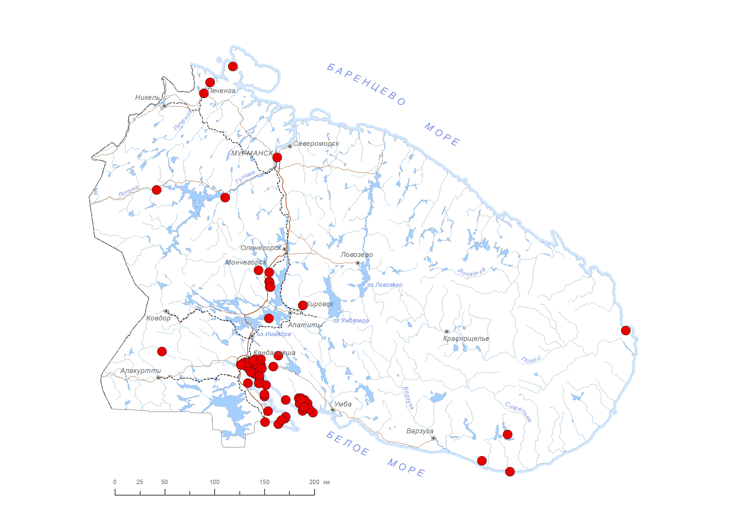 В Мурманской обл. вид находится на северном пределе ареала. Обитает как в лесной, так и в тундровой зоне. Бабочки наиболее обычны в южных р-нах (Кандалакшский, Терский) [1]. В центральных (Хибины, Лапландский заповедник) [2] и северных (Кольский, Печенгский) р-нах редки. В тундре появляется, по всей вероятности, не ежегодно [1]. Известны случаи залета на о-ва Баренцева моря (Айновы о-ва, Семь о-вов) [1]. Все зарегистрированные встречи относятся преимущественно к западной половине области от г. Мурманска и Печенги на севере до Кандалакши и Умбы на юге [1–6]. Отсутствие встреч бабочек в восточной части п-ова, скорее всего, связано с недостатком респондентов. В южных и центральных р-нах вид регулярно размножается. В России встречается практически повсеместно. Вне России: вся территория бывшего СССР, а также вся остальная Палеарктика и Аляска.