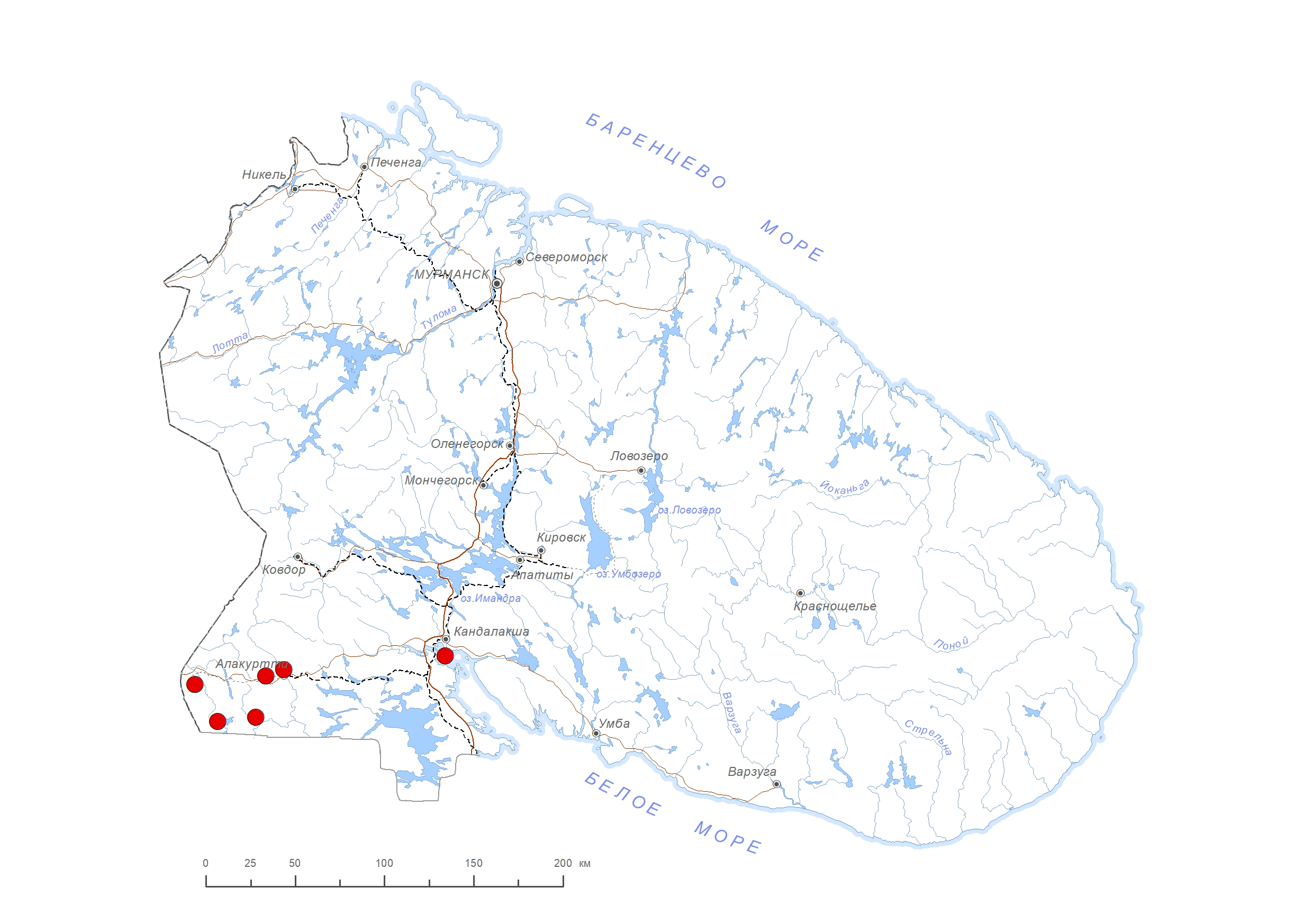 Известен из нескольких разрозненных, удаленных друг от друга местонахождений в южных районах области по единичным экземплярам. За период с 1937 г. [4, 5] новых местонахождений не обнаружено.